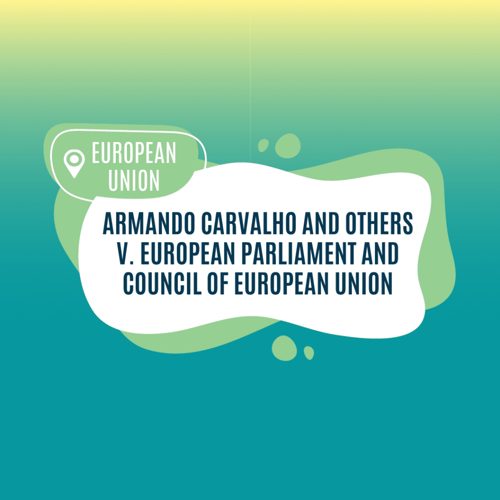 | [1] Armando Carvalho and Others v European Parliament & Council of the European Union [2019] Case T-330/18, ECLI:EU:T:2019:324, available at https://climatecasechart.com/wp-content/uploads/non-us-case-documents/2019/20190515_Case-no.-T-33018_judgment-1.pdf [Accessed 27 May 2022]. [2] Case C?565/19 P, Armando Carvalho and Others v European Parliament & Council of the European Union, Appeal Judgement [2021] ECLI:EU:C:2021:252, available at https://eur-lex.europa.eu/legal-content/EN/TXT/HTML/?uri=CELEX:62019CJ0565&from=EN [Accessed 27 May] [3] Armando Carvalho and Others v European Parliament & Council of the European Union [2019] Case T-330/18, ECLI:EU:T:2019:324, para. 89. See also, European Council, Conclusions EUCO 169/14, 24/10/2014, available at https://www.consilium.europa.eu/uedocs/cms_data/docs/pressdata/en/ec/145397.pdf [Accessed 17 May 2022]. [4] European Commission, 2030 Climate & Energy Framework (European Commission, N/A), available at https://ec.europa.eu/clima/eu-action/climate-strategies-targets/2030-climate-energy-framework_en#greenhouse-gas-emissions—raising-the-ambition [Accessed 27 May 2022]. [5] Directive (EU) 2018/410 of the European Parliament and of the Council of 14 March 2018 amending Directive 2003/87/EC to enhance cost-effective emission reductions and low-carbon investments, and Decision (EU) 2015/1814 (OJ L 76, 19.3.2018). [6] Regulation (EU) 2018/842 of the European Parliament and of the Council of 30 May 2018 on binding annual greenhouse gas emission reductions by Member States from 2021 to 2030 contributing to climate action to meet commitments under the Paris Agreement and amending Regulation (EU) No 525/2013 (OJ L 156, 19.6.2018). [7] Regulation (EU) 2018/841 of the European Parliament and of the Council of 30 May 2018 on the inclusion of greenhouse gas emissions and removals from land use, land use change and forestry in the 2030 climate and energy framework, and amending Regulation (EU) No 525/2013 and Decision No 529/2013/EU. [8] Charter of Fundamental Rights of the European Union [2012] OJ C326/391 [9] Paris Agreement to the United Nations Framework Convention on Climate Change, Dec. 12, 2015, T.I.A.S. No. 16-1104; Case T-330/18, Armando Carvalho and Others v European Parliament & Council of the European Union, [2019] General Court Order, paras 224, 254, and 263. [10] Ibid., para 225. [11] Ibid. [12] Ibid., paras 413 – 416. [13] Case T-330/18, Armando Carvalho and Others v European Parliament & Council of the European Union, [2019] General Court Order, para 48. [14] Case C?565/19 P, Armando Carvalho and Others v European Parliament & Council of the European Union, Appeal Judgement [2021] ECLI:EU:C:2021:252, available at https://eur-lex.europa.eu/legal-content/EN/TXT/?uri=CELEX%3A62019CJ0565 [Accessed 23 May 2022], paras. 17-18. [15] Case T-330/18, Armando Carvalho and Others v European Parliament & Council of the European Union [2019] ECLI:EU:T:2019:324, para 58 25-27. [16] Case T-330/18, Armando Carvalho and Others v European Parliament & Council of the European Union, [2019] General Court Order, para 33, available at http://climatecasechart.com/wp-content/uploads/sites/16/non-us-case-documents/2019/20190515_Case-no.-T-33018_judgment-1.pdf [Accessed 27 May 2022]. [17] Ibid. [18] Ibid., para 50. [19] Case T-330/18, Armando Carvalho and Others v European Parliament & Council of the European Union, [2019] General Court Order, para 48. [20] Case T-330/18, Armando Carvalho and Others v European Parliament & Council of the European Union, Applicant’s Reply to the Defendants’ Pleas of Inadmissibility [2018] paras 46 – 55, available at https://climatecasechart.com/wp-content/uploads/non-us-case-documents/2018/20181210_Case-no.-T-33018_reply.pdf [Accessed 27 May 2022] [21] Ibid., paras 23, 97. [22] Case C?565/19 P, Armando Carvalho and Others v European Parliament & Council of the European Union, Appeal Judgement [2021] ECLI:EU:C:2021:252, available at https://eur-lex.europa.eu/legal-content/EN/TXT/?uri=CELEX%3A62019CJ0565, para 110. [23] Ibid., paras 37, 41 – 42; Plaumann and Others. v European Commission [1963] Case 25/62, ECR 00095. [24] Case C?565/19 P, Armando Carvalho and Others v European Parliament & Council of the European Union, Appeal Judgement [2021] ECLI:EU:C:2021:252, paras 53-65. [25] Ibid. [26] Ibid., para 42-43. [27] Ibid., paras 40, 89. For previous case law, see Unión de Pequeños Agricultores v Council of the European Union [2002] Case C-50/00 P, ECLI:EU:C:2002:197 and Inuit Tapiriit Kanatami and Others European Parliament and Council of the European Union [2013] Case C?583/11 P, ECLI:EU:C:2013:625. [28] Case C?565/19 P, Armando Carvalho and Others v European Parliament & Council of the European Union, Appeal Judgement [2021] ECLI:EU:C:2021:252, para 89. [29] Ibid., para 106. |
